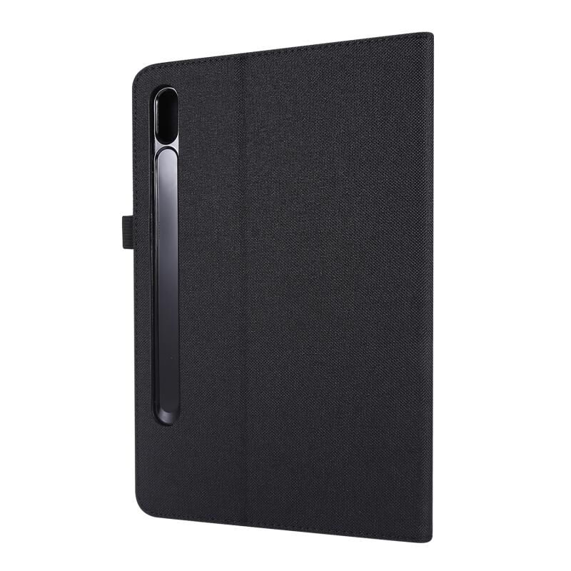 Για Samsung Galaxy Tab S8 Ultra Οριζόντια Flip υφασμάτινη δερμάτινη θήκη tablet με υποδοχές για κάρτες και θήκη (μαύρο)