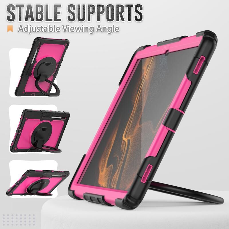 Για Samsung Galaxy Tab S8 Ultra λουράκι ώμου σιλικόνης + PC θήκη tablet (μαύρο ροζ κόκκινο)