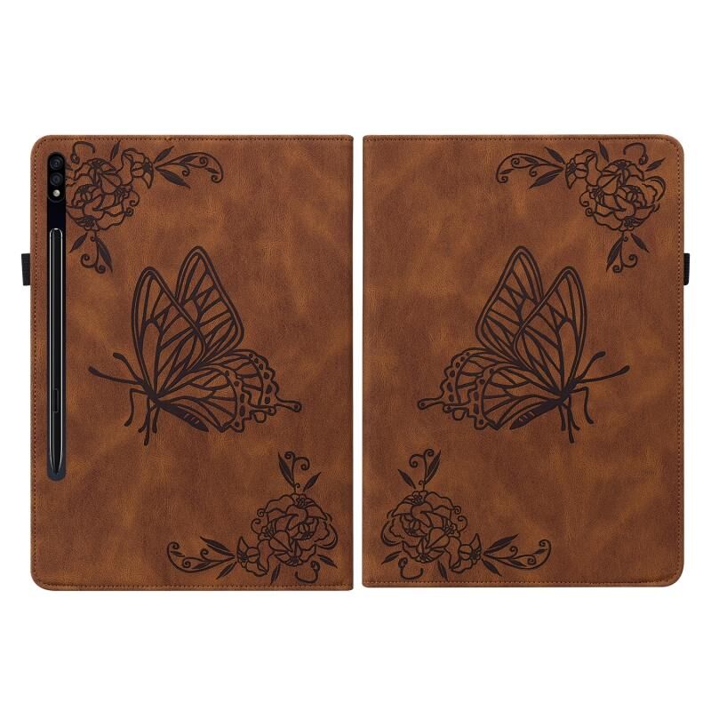 Θήκη ταμπλέτας Samsung Galaxy Tab S9 με ανάγλυφο σχέδιο πεταλούδας και λουλουδιών από δέρμα (Μπλε)