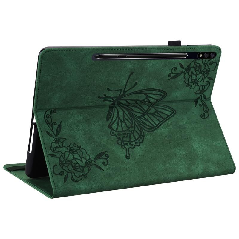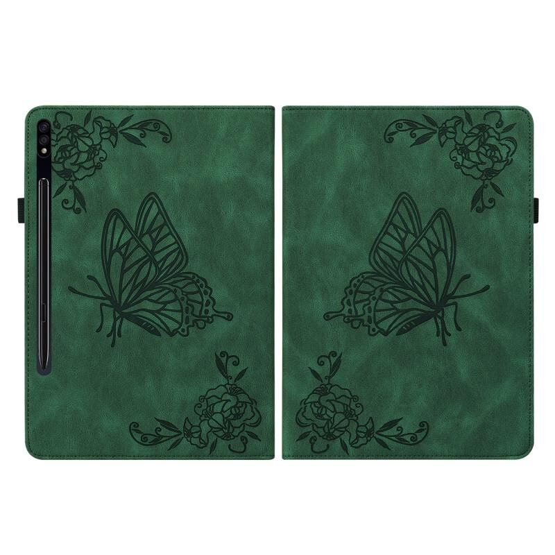 Θήκη ταμπλέτας Samsung Galaxy Tab S9 με ανάγλυφο σχέδιο πεταλούδας και λουλουδιών από δέρμα (Πράσινο)