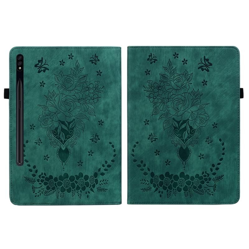 Θήκη Ταμπλέτας Samsung Galaxy Tab S9 Butterfly Rose από Δέρμα με Χαρακτό (Κόκκινο Ρόδι)