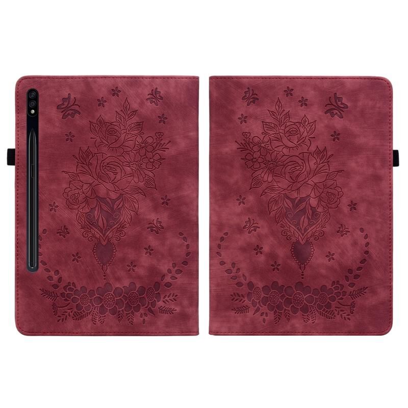 Θήκη Ταμπλέτας Samsung Galaxy Tab S9 Butterfly Rose από Δέρμα με Χαρακτό (Κόκκινο Ρόδι)