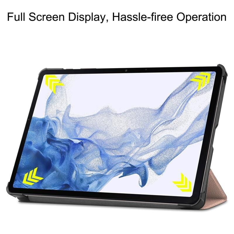 For Samsung Galaxy Tab S9 Custer Pure Color 3-Fold Holder Smart Leather Tablet Case(Rose Gold)
