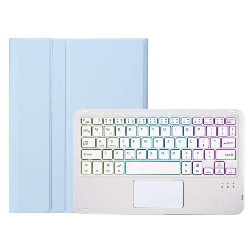 For Samsung Galaxy Tab S9 FE / 10 FE Candy Color Touch Backlight Bluetooth Keyboard Leather Tablet Case with Pen Holder(Ice Blue)
