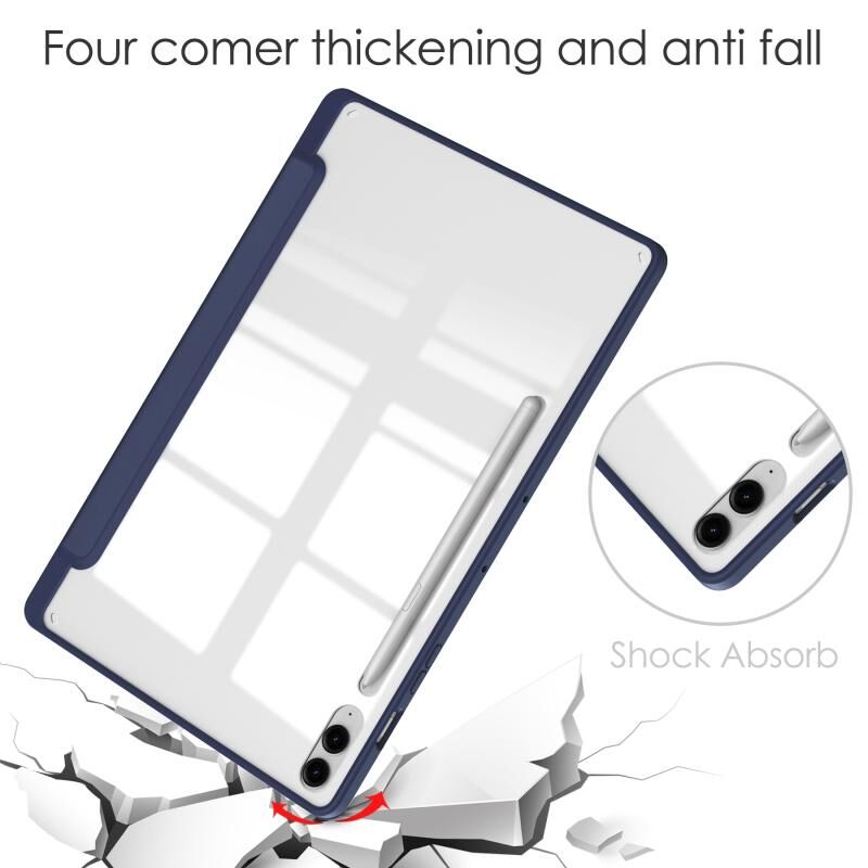Για Samsung Galaxy Tab S9 FE+ / S10+ Θήκη Ταμπλέτας από Ακρυλικό Δέρμα με Τριπλή Δίπλωση και Θήκη για Στυλό (Σκούρο Πράσινο)