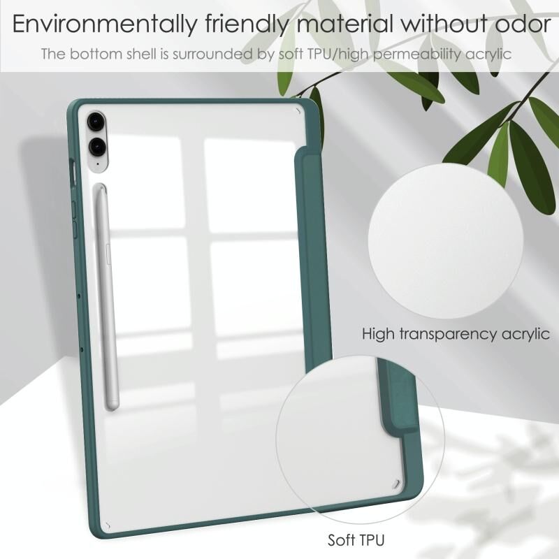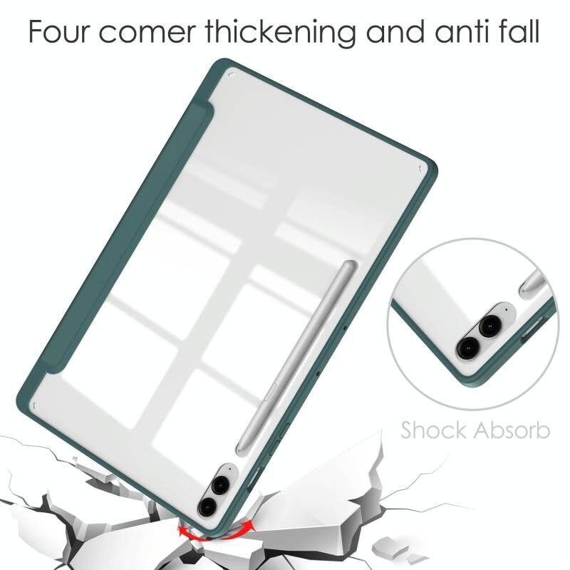 Για Samsung Galaxy Tab S9 FE+ / S10+ Θήκη Ταμπλέτας από Ακρυλικό Δέρμα με Τριπλή Δίπλωση και Θήκη για Στυλό (Σκούρο Πράσινο)
