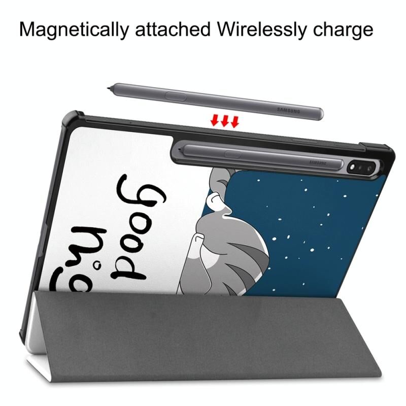 For Samsung Galaxy Tab S9+ JUNSUNMAY Custer Painted 3-Fold Stand Leather Smart Tablet Case(Lazy Cat) (JUNSUNMAY)