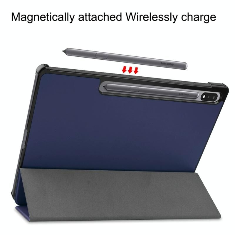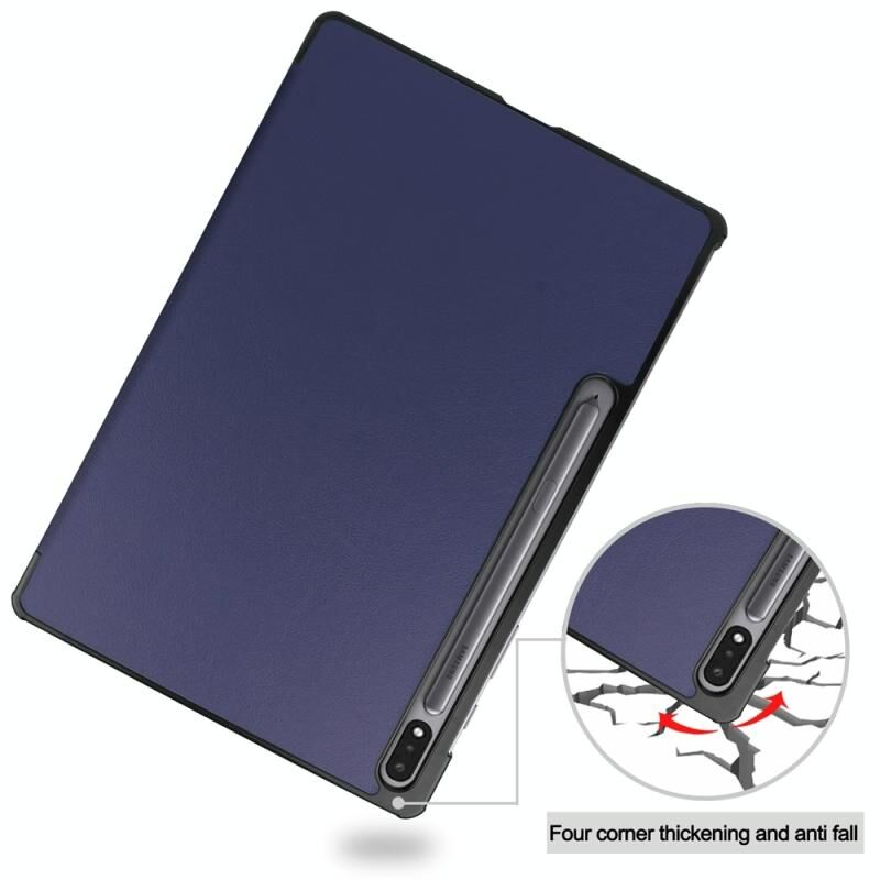 For Samsung Galaxy Tab S9+ JUNSUNMAY Custer Solid Color 3-Fold Stand Leather Smart Tablet Case(Dark Blue) (JUNSUNMAY)
