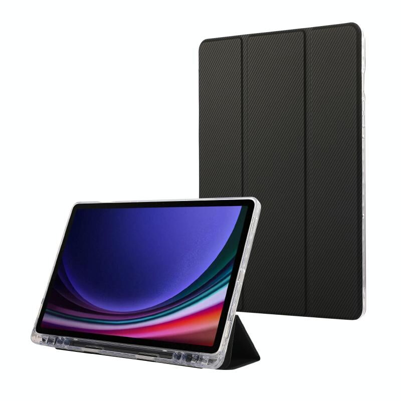 Για Samsung Galaxy Tab S9 / S9 FE Carbon Fiber Clear Acrylic 3-Fold Leather Tablet Case (Μαύρο)