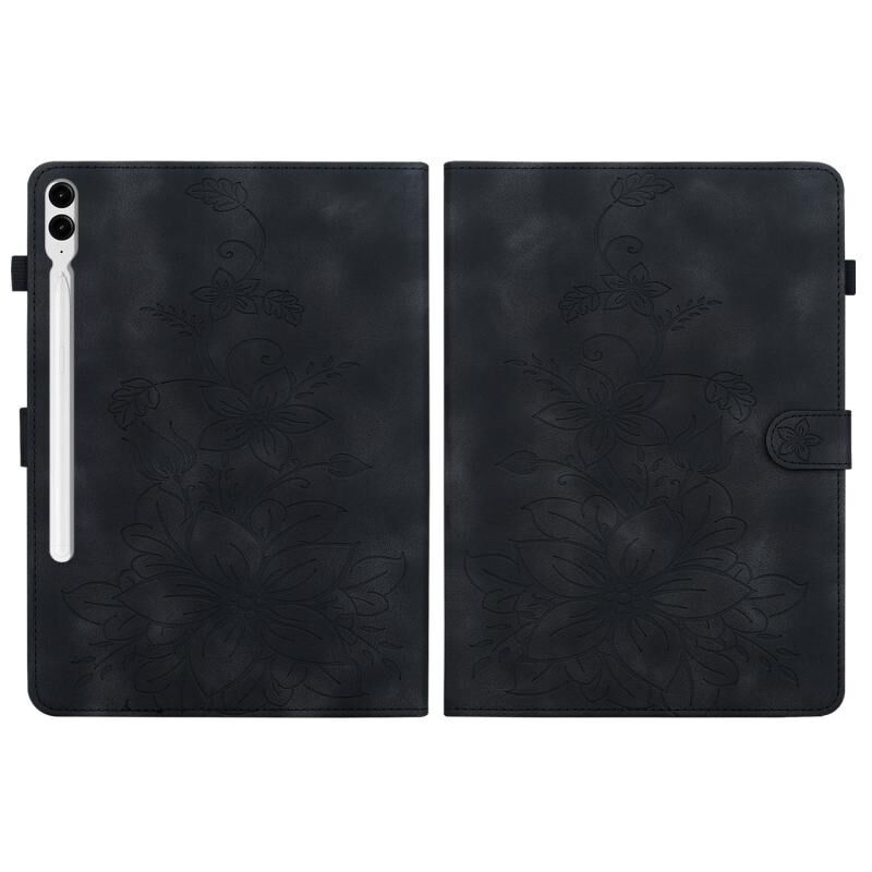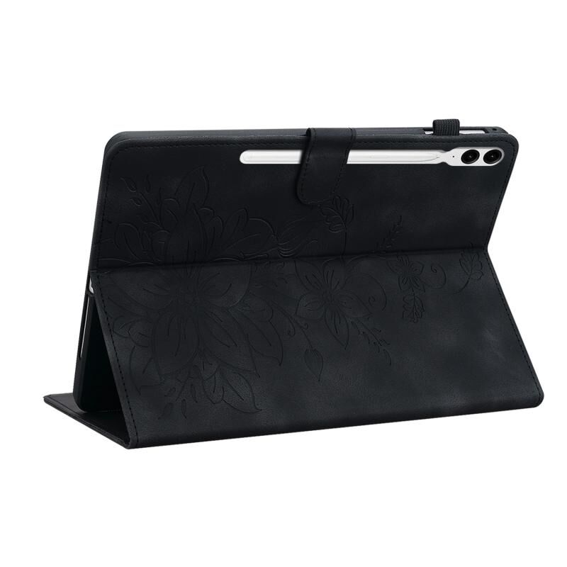 Για Samsung Galaxy Tab S9+ / S9 FE+ Lily ανάγλυφη δερμάτινη θήκη tablet (μαύρο)