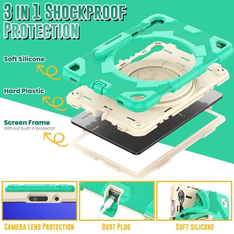 6. Detachable Shoulder Strap: The adjustable hand strap provides easy and comfortable grip, a must-have feature when you are presenting your tablet to others. The detachable and adjustable shoulder strap can help you carry your tablet more safely while hiking, traveling and other outdoor activities. This can also be used to secure your tablet to the car seat.