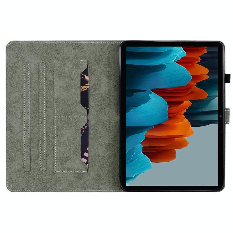 For Samsung Galaxy Tab S9+ Tiger Pattern Flip Leather Tablet Case(Dark Green)