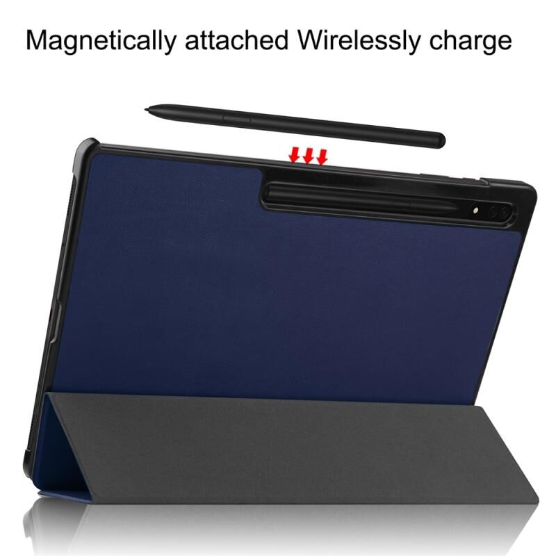 Για Samsung Galaxy Tab S9 Ultra JUNSUNMAY Θήκη Ταμπλέτας από Δέρμα με Στήριξη 3 Διπλωμάτων σε Μονόχρωμο Σχέδιο (Σκούρο Μπλε) (JUNSUNMAY)