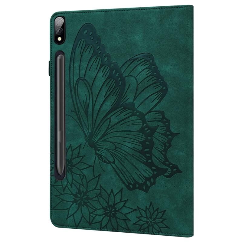 Θήκη ταμπλέτας Samsung Galaxy Tab S9 Ultra / S8 Ultra από δέρμα με ανάγλυφο σχέδιο πεταλούδας (Πράσινο)