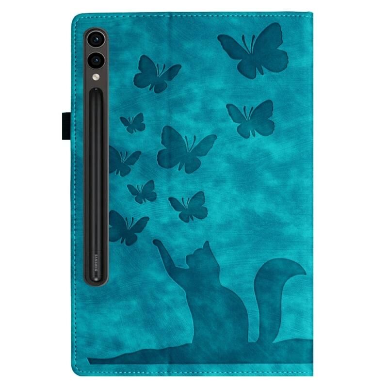 Θήκη ταμπλέτας Samsung Galaxy Tab S9 Ultra / S8 Ultra από δέρμα με ανάγλυφο σχέδιο πεταλούδας και γάτας (Μωβ)