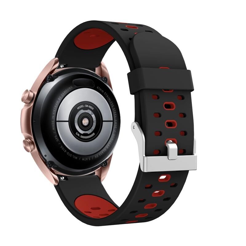For Samsung Galaxy Watch 3 41mm Three Row Holes Silicone Watch Band(Black Red)