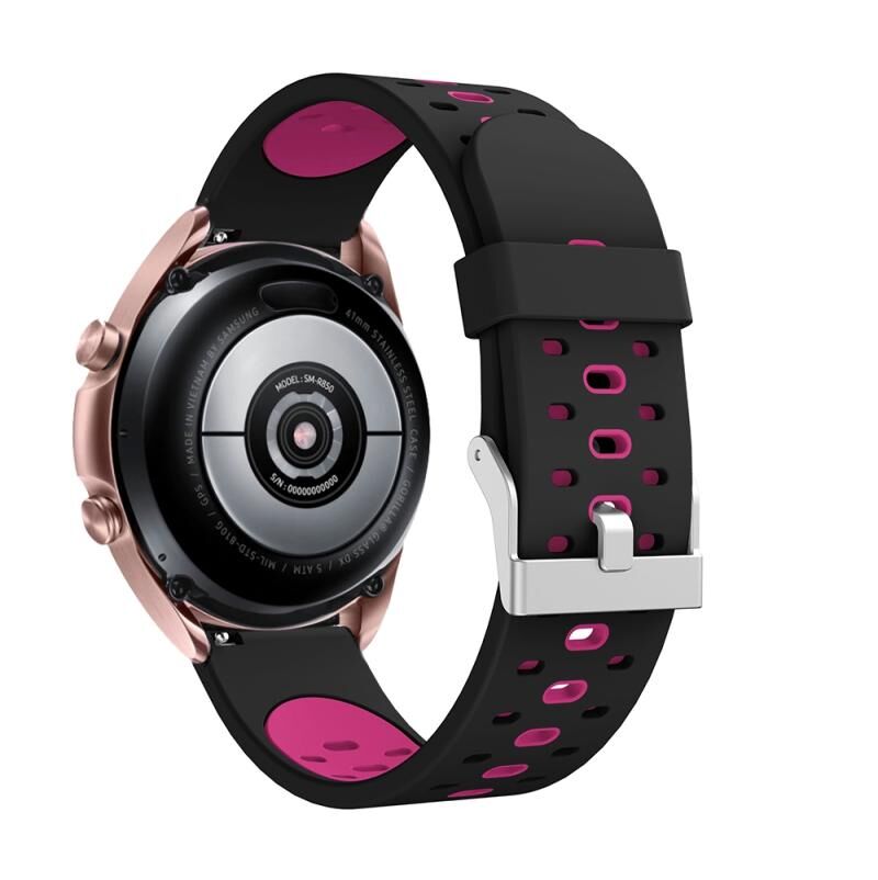 Για Samsung Galaxy Watch 3 41mm Λουράκι Σιλικόνης με Τρεις Σειρές Οπών (Μαύρο Ροζ)