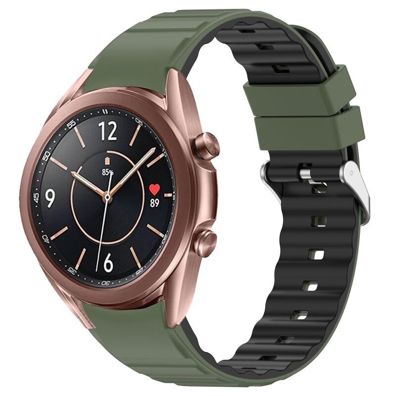 Για το Samsung Galaxy Watch 3 41mm Δύο χρώματα οριζόντια ζώνη σιλικόνης ρολόι (Olive Green Black)
