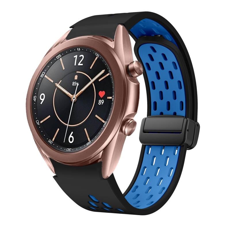 For Samsung Galaxy Watch 3 41mm Two Color Magnetic Folding Black Buckle Silicone Watch Band(Black Sky Blue)