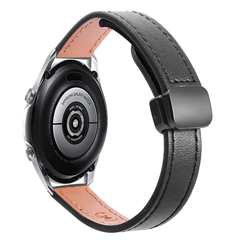 Για το Samsung Galaxy Watch 3 45mm 22mm Λεπτό μαγνητικό λουράκι με αγκράφα από δέρμα μικροϊνών (Μαύρο)