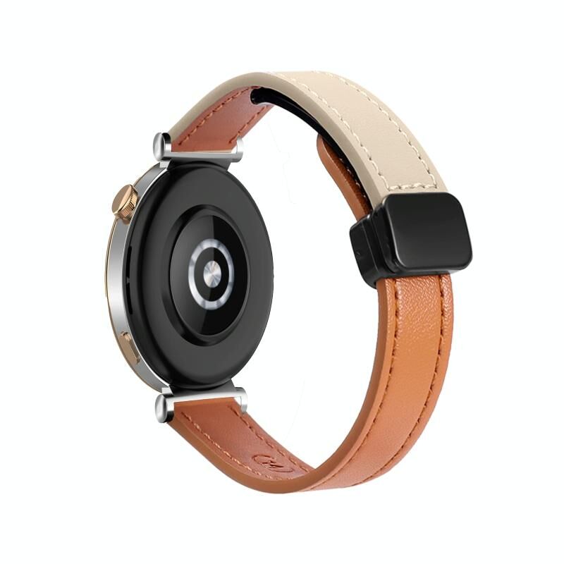Για το Samsung Galaxy Watch 3 45mm 22mm Λεπτό μαγνητικό λουράκι με αγκράφα από δέρμα μικροϊνών (πορτοκαλί+κρέμα βερίκοκο)