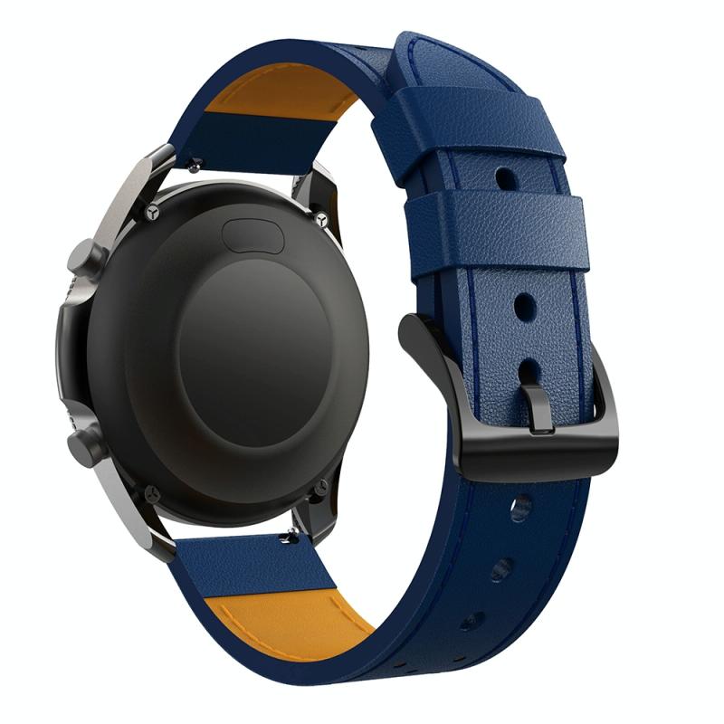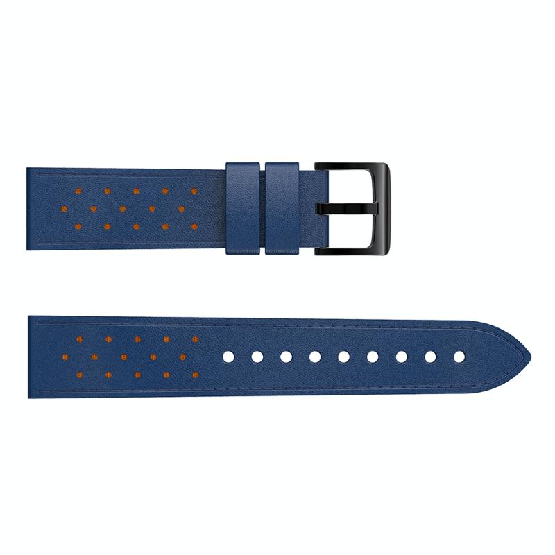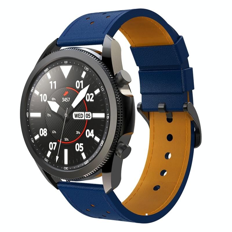 For Samsung Galaxy Watch 3 45mm Round Hole Line Leather Watch Band(Blue Leather Line Orange Point)