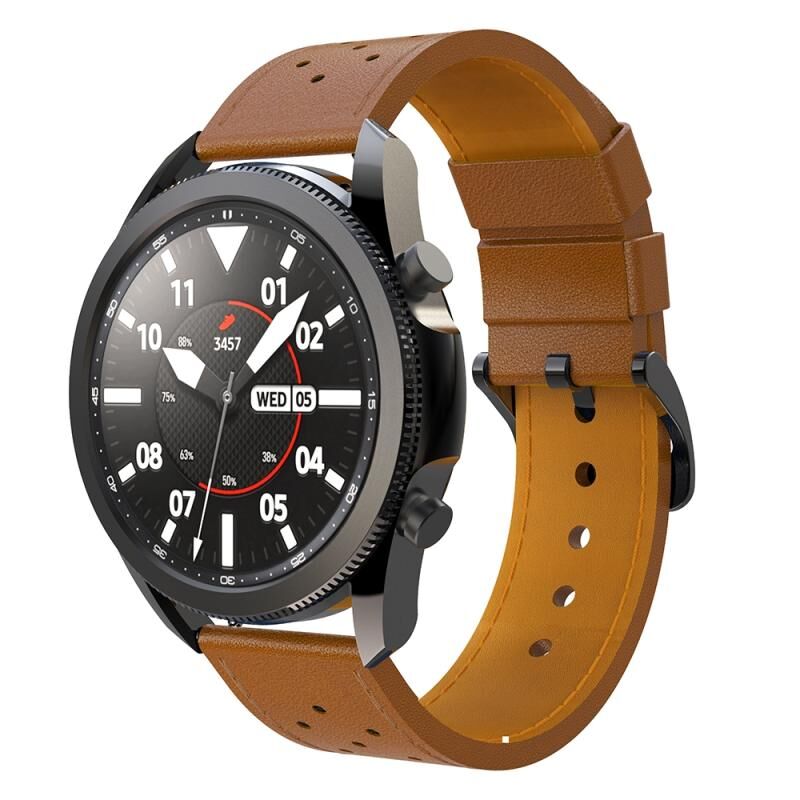 For Samsung Galaxy Watch 3 45mm Round Hole Line Leather Watch Band(Brown Leather Line Black Point)