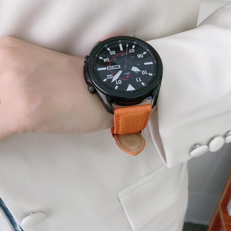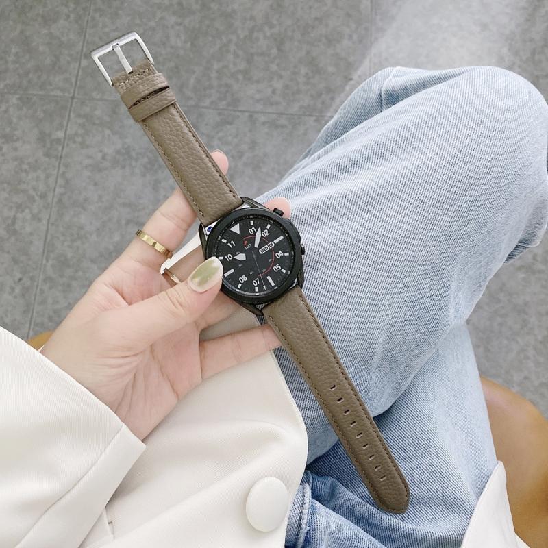 For Samsung Galaxy Watch 3 45mm Sewing Litchi Texture Leather Watch Band(Grey)