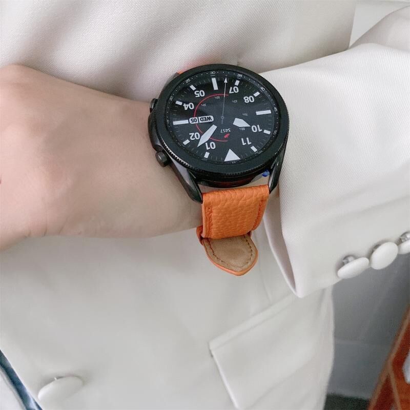 For Samsung Galaxy Watch 3 45mm Sewing Litchi Texture Leather Watch Band(Red)