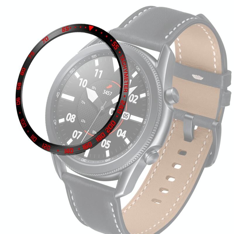 Για Samsung Galaxy Watch 3 45mm Smart Watch Steel Bezel Ring, E Version (μαύρο δαχτυλίδι κόκκινο γράμμα)