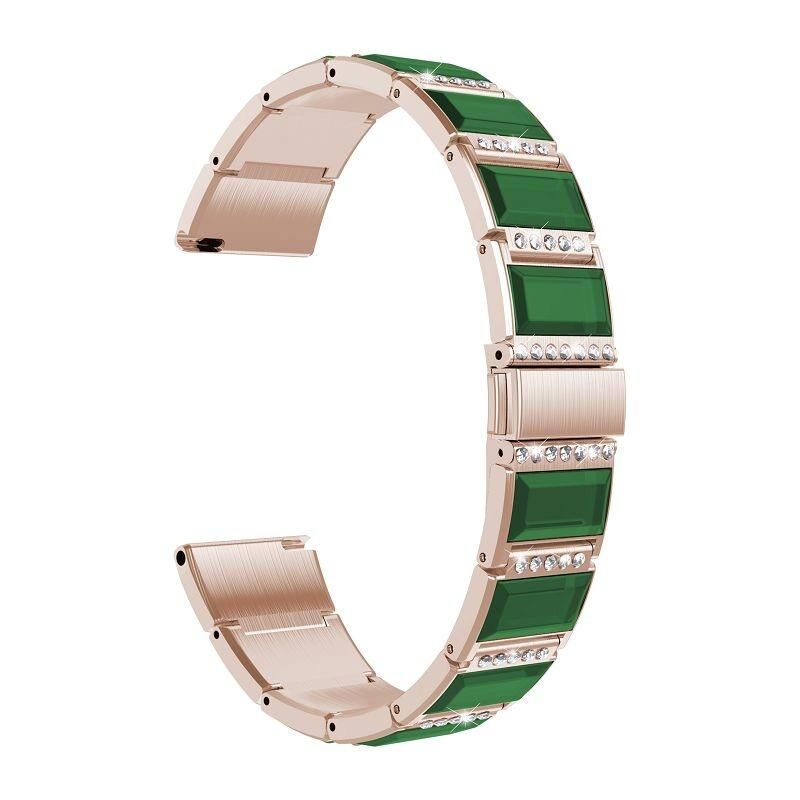 For Samsung Galaxy Watch 3 45mm Stainless Steel Diamond Encrusted Watch Band(Gold+Green)