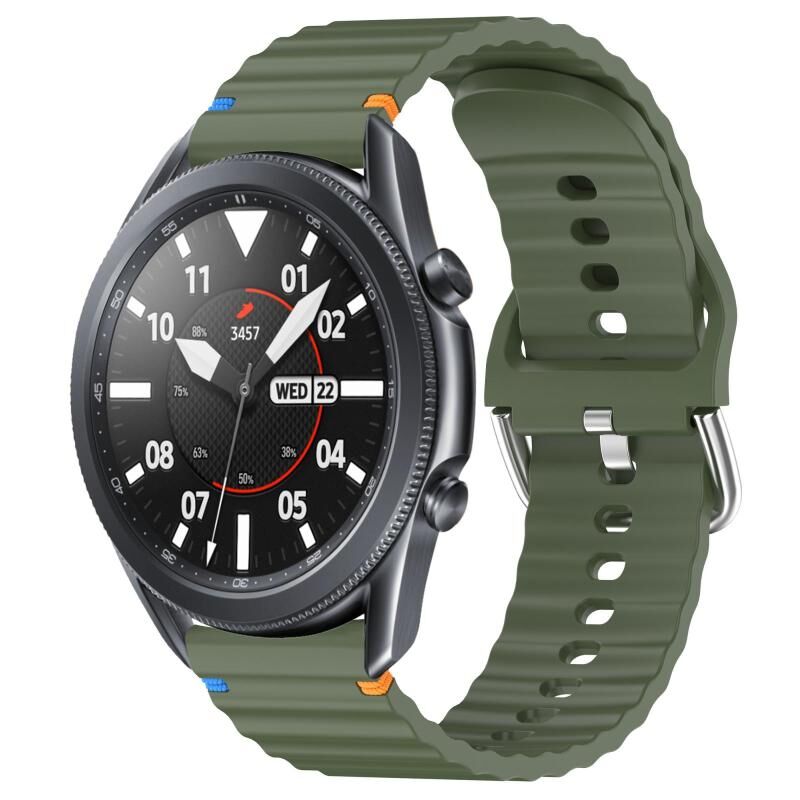 For Samsung Galaxy Watch 3 45mm Wavy Grain Stitched 22mm Silicone Watch Band(Army Green)