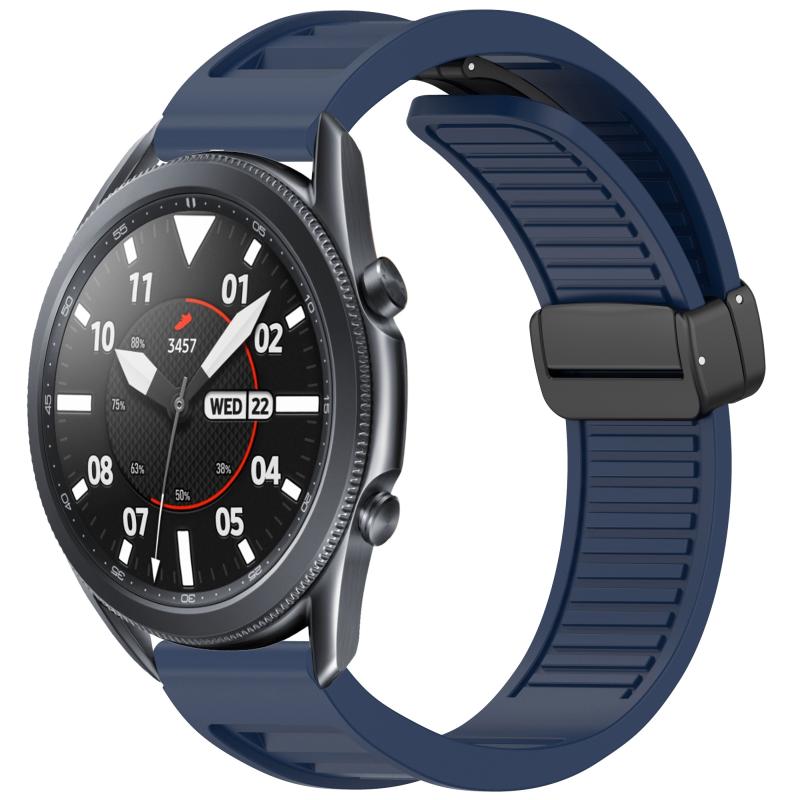 For Samsung Galaxy Watch 3 45mm Window Blind Magnetic Buckle 22mm Silicone Watch Band(Midnight Blue)