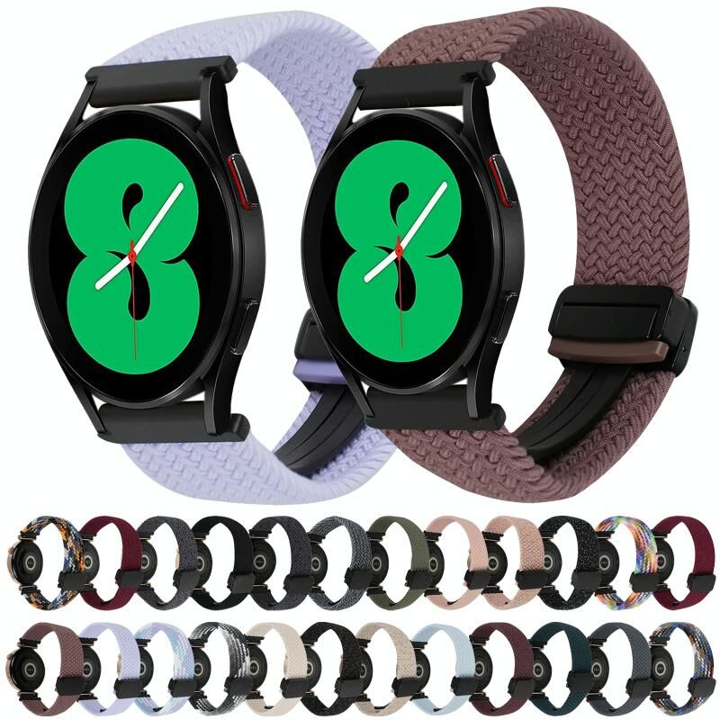 Για Samsung Galaxy Watch 4 20mm μαγνητική πόρπη Braided λουράκι ρολογιού (Starlight Black)