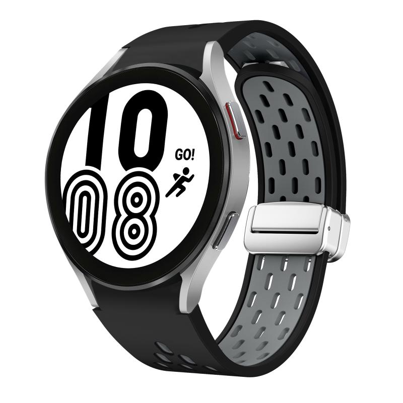 For Samsung Galaxy Watch 4 40 / 44mm Two Color Magnetic Folding Silver Buckle Silicone Watch Band(Black Gray)
