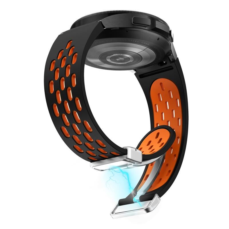 For Samsung Galaxy Watch 4 40 / 44mm Two Color Magnetic Folding Silver Buckle Silicone Watch Band(Black Orange)