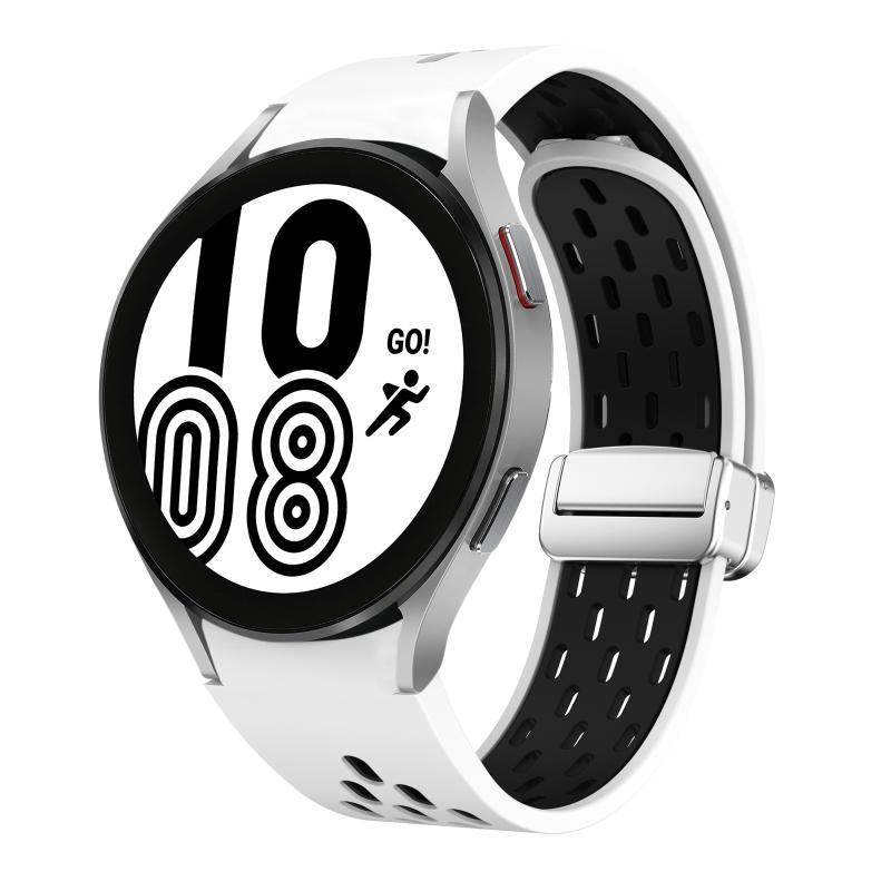 For Samsung Galaxy Watch 4 40 / 44mm Two Color Magnetic Folding Silver Buckle Silicone Watch Band(White Black)