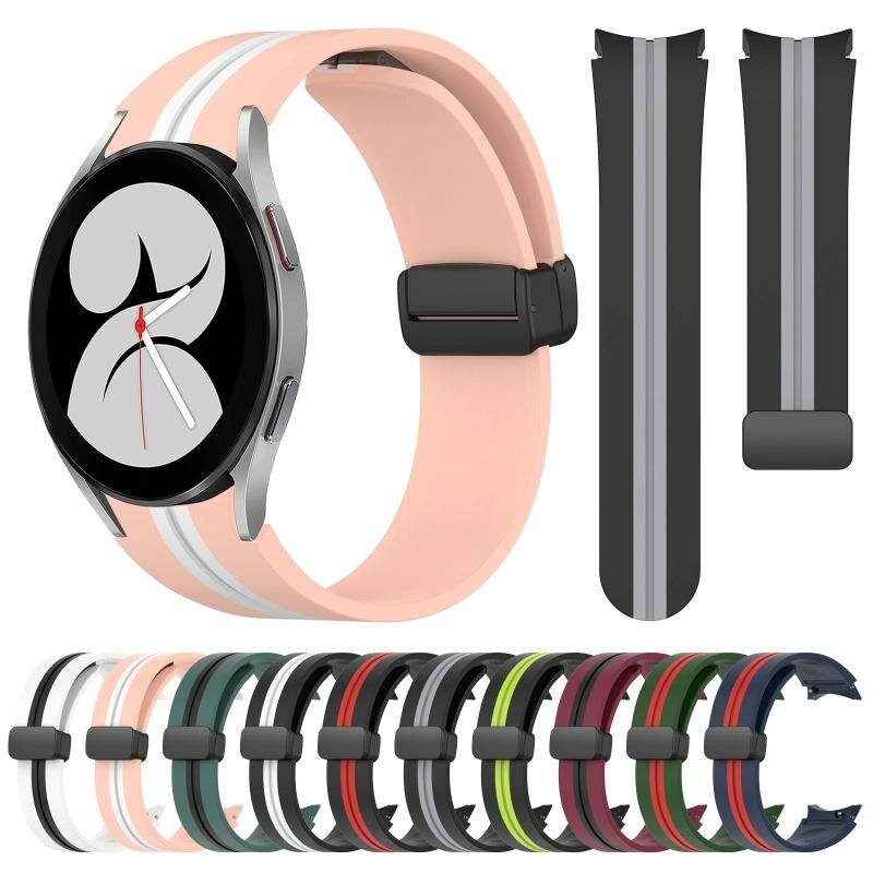 Για το Samsung Galaxy Watch 4 40mm Πτυσσόμενο μαγνητικό κούμπωμα ζώνη σιλικόνης (μαύρο+κόκκινο)