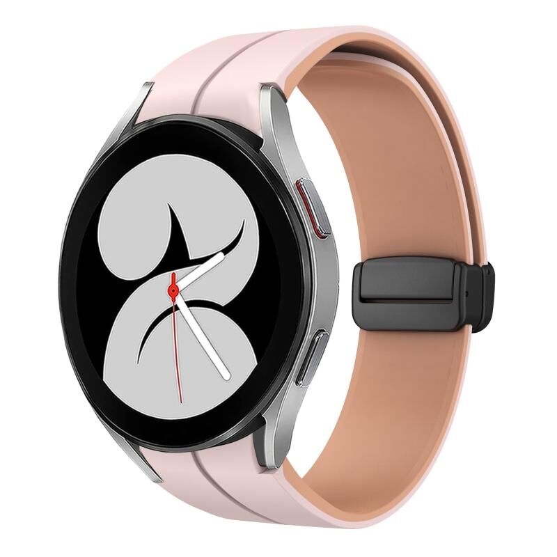 Για το Samsung Galaxy Watch 4 40mm Δύο χρώματα μαγνητική πτυσσόμενη πόρπη σιλικόνης (ροζ + ροζ τέφρα)