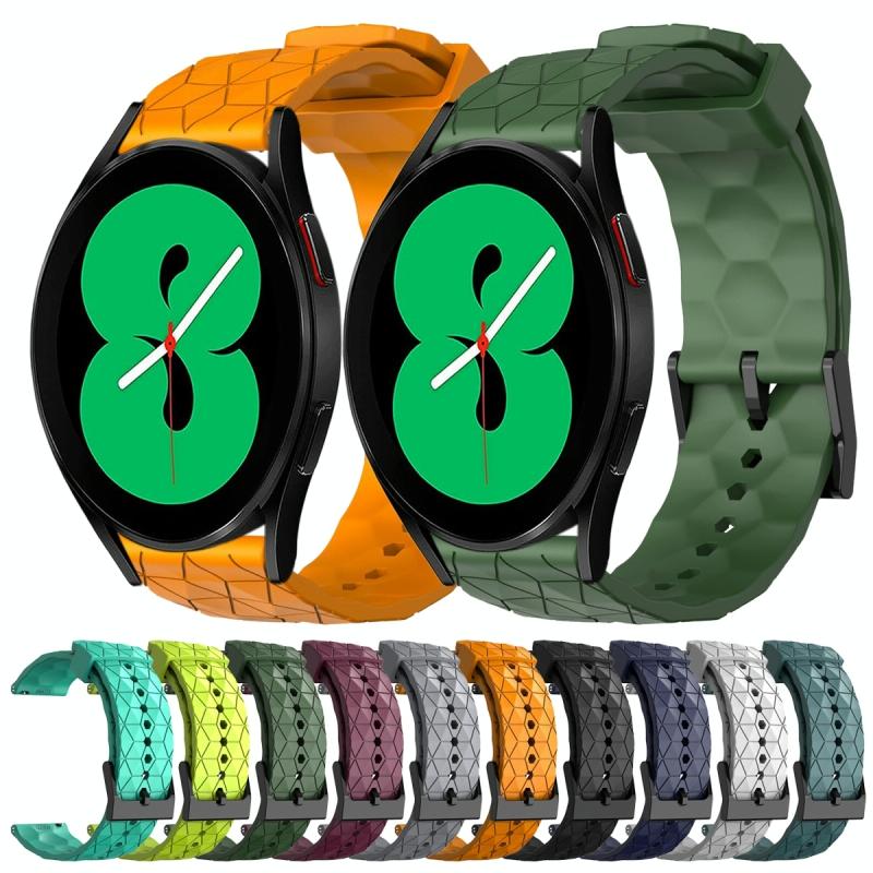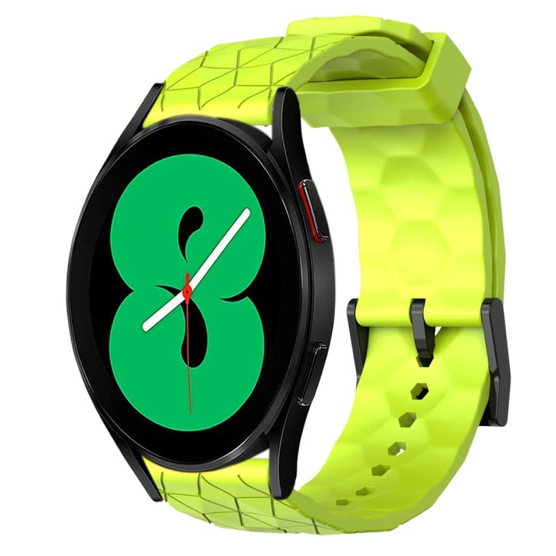 For Samsung Galaxy Watch 4 44mm 20mm Football Pattern Solid Color Silicone Watch Band(Lime Green)
