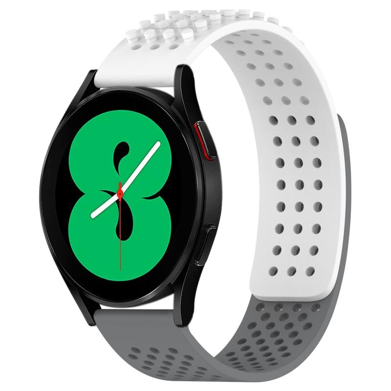 Λουράκι Samsung Galaxy Watch 4 44mm 20mm Αναπνεύσιμο Σιλικόνης 3D Dots (Λευκό+Γκρι)