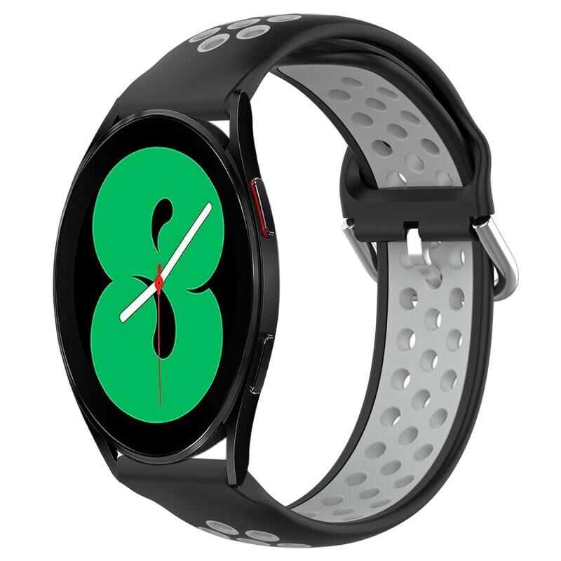 Για το Samsung Galaxy Watch 4 44mm 20mm διάτρητη αναπνεύσιμη αθλητική ζώνη ρολογιού σιλικόνης (μαύρο + γκρι)