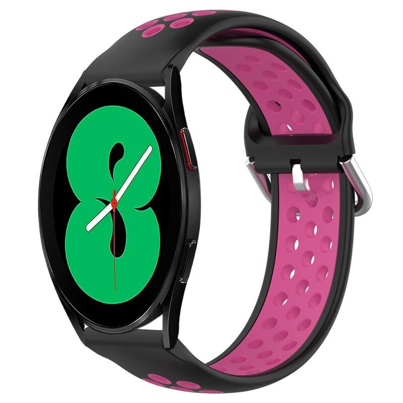 Για το Samsung Galaxy Watch 4 44mm 20mm διάτρητη αναπνεύσιμη αθλητική ζώνη ρολογιού σιλικόνης (Μαύρο + Ροζ Κόκκινο)