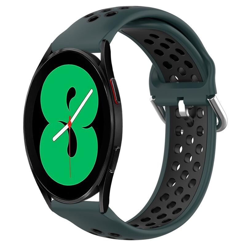 Για το Samsung Galaxy Watch 4 44mm 20mm διάτρητη αναπνεύσιμη αθλητική ζώνη ρολογιού σιλικόνης (πράσινο+μαύρο)