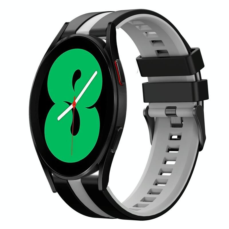 Για το Samsung Galaxy Watch 4 44mm 20mm δύο χρωμάτων αθλητικό λουράκι σιλικόνης (μαύρο+γκρι)