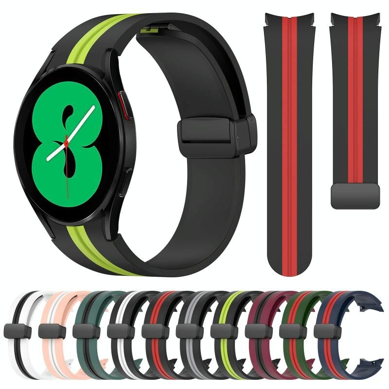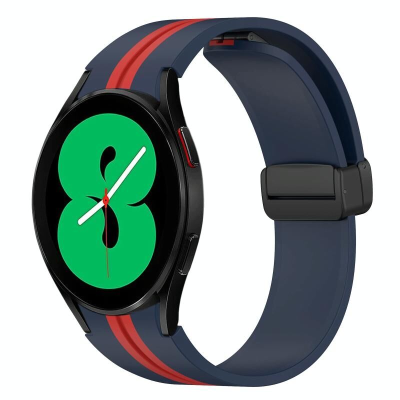 Για το Samsung Galaxy Watch 4 44mm Πτυσσόμενο μαγνητικό κούμπωμα ζώνη σιλικόνης (Μπλε+Κόκκινο)