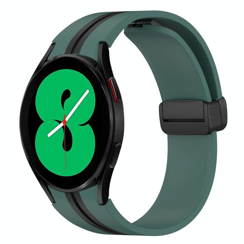 Για Samsung Galaxy Watch 4 44mm Πτυσσόμενο μαγνητικό κούμπωμα ζώνη σιλικόνης (πράσινο+μαύρο)