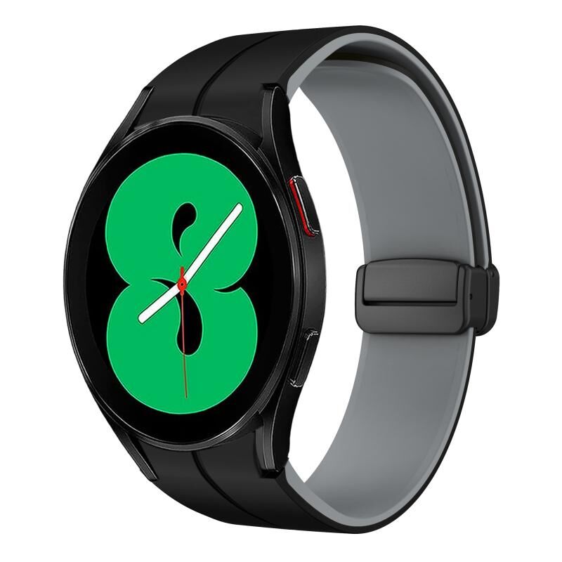 Για Samsung Galaxy Watch 4 44mm Δύο χρώματα μαγνητική πτυσσόμενη πόρπη σιλικόνης (μαύρο+γκρι)
