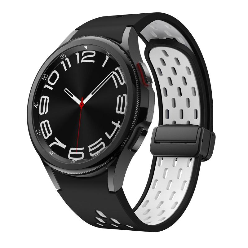 For Samsung Galaxy Watch 4 / 5 / 6 Kalebol Two-color Mesh Magnetic Black Buckle Silicone Strap(Black White) (Kalebol)