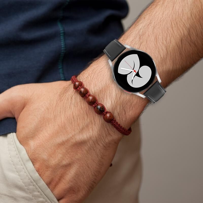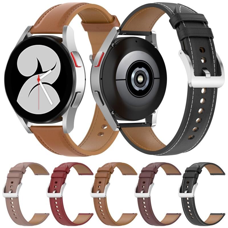 Για Samsung Galaxy Watch 4 Λουρί ρολογιού με υφή δέρματος μοσχαριού και ραφή (Μαύρο)